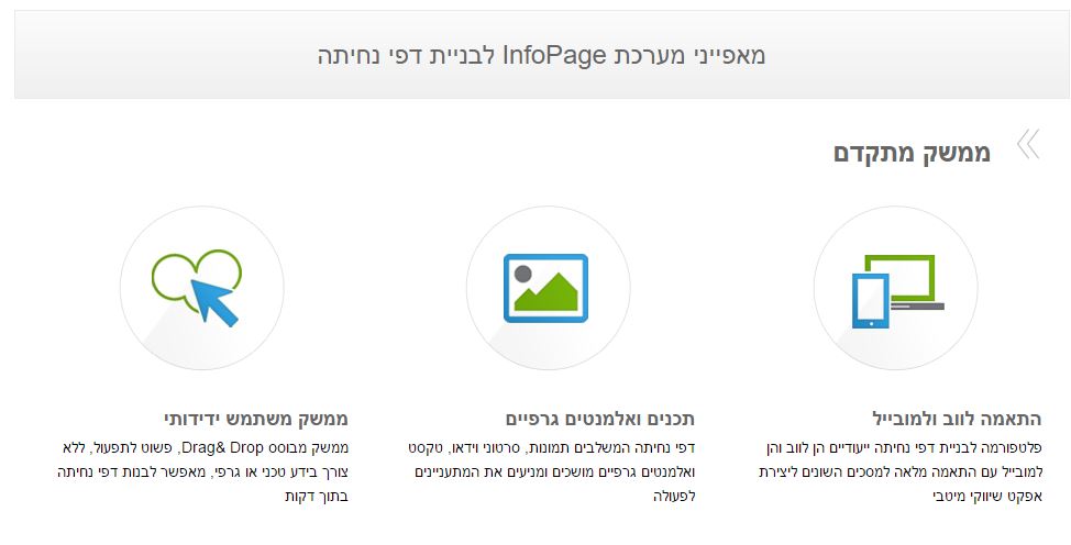 הנה רשימת חלק מתכונות ממשק דפי הנחיתה:
