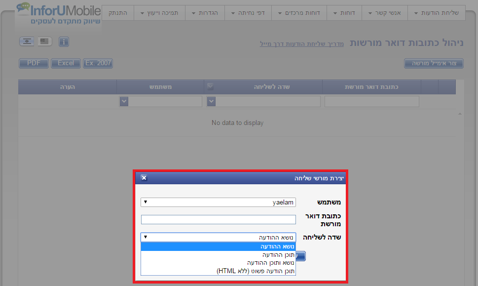 יפתח חלון מורשי שליחה