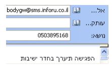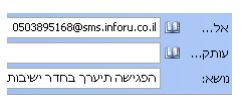 על מנת שהאימייל יומר להודעת SMS עליו להשלח לכתובת נמען המכילה את הדומיין sms.inforu.co.il.