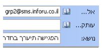 ג. במידה ורוצים שההודעה תשלח לקבוצה של אנשים, כפי שזו מוגדרת במערכת InfoSMS, יש למען את המייל לפי מספר הקבוצה המוגדר במערכת. אם למשל אנו רוצים להפיץ את ההודעה לכל החברים בקבוצה מספר 2 במשתמש שלנו במערכת נגדיר את נמען המייל כך: