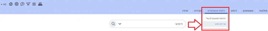 הפעולה תעביר אותנו אל מסך הדוחות וניהול המשתמשים. תחת תפריט דוחות אוטומטיים נבחר בלשונית צור דוח חדש:
