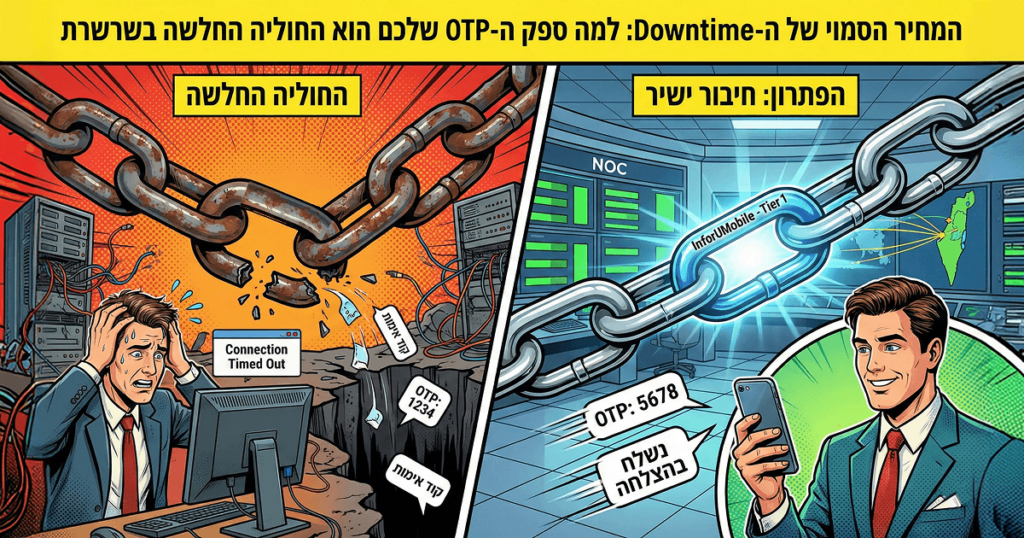 מבחינת הלקוח, המערכת שלכם תקולה. הוא לא יודע שיש ספק צד ג' שאחראי על ההודעה הזו. הוא כועס עליכם. במקרה הטוב הוא ינסה שוב בעוד שעה; במקרה הרע (והנפוץ), הוא פשוט יעבור למתחרה. בעולם הדיגיטלי, הודעת ה-OTP היא לא סתם "SMS". היא המפתח לכניסה לבית העסק שלכם. אם המפתח שבור, הדלת נעולה.